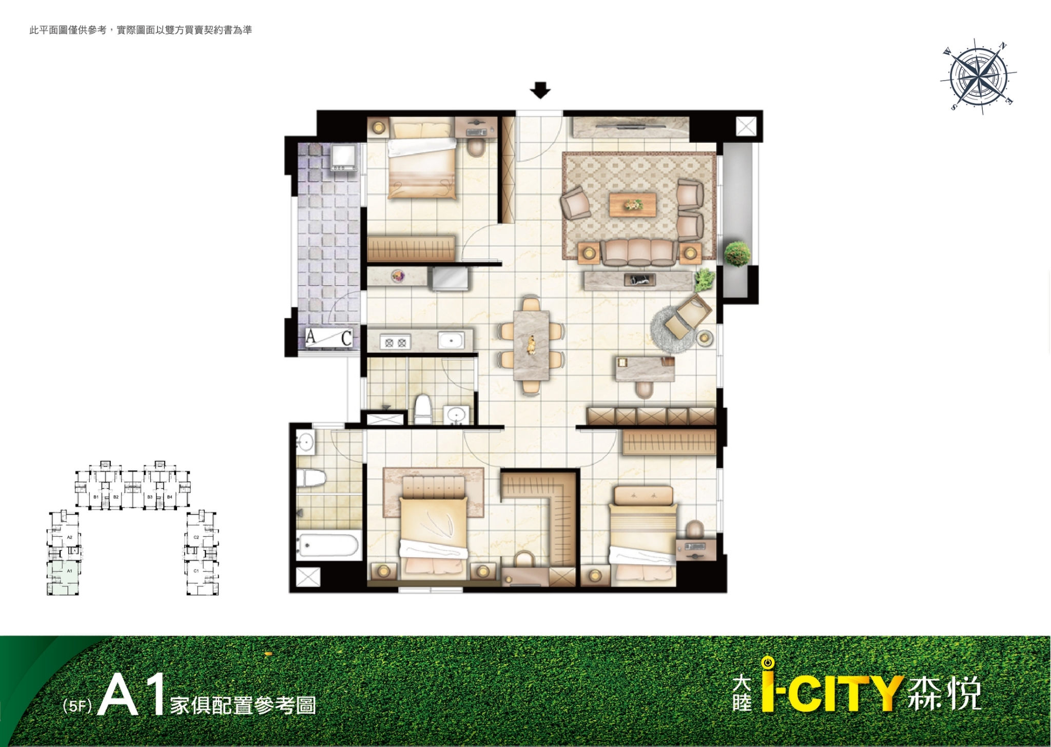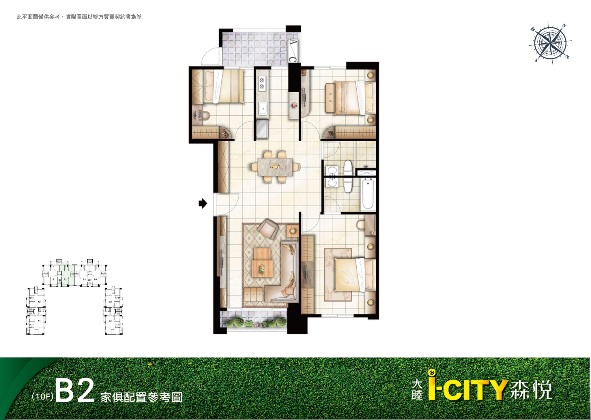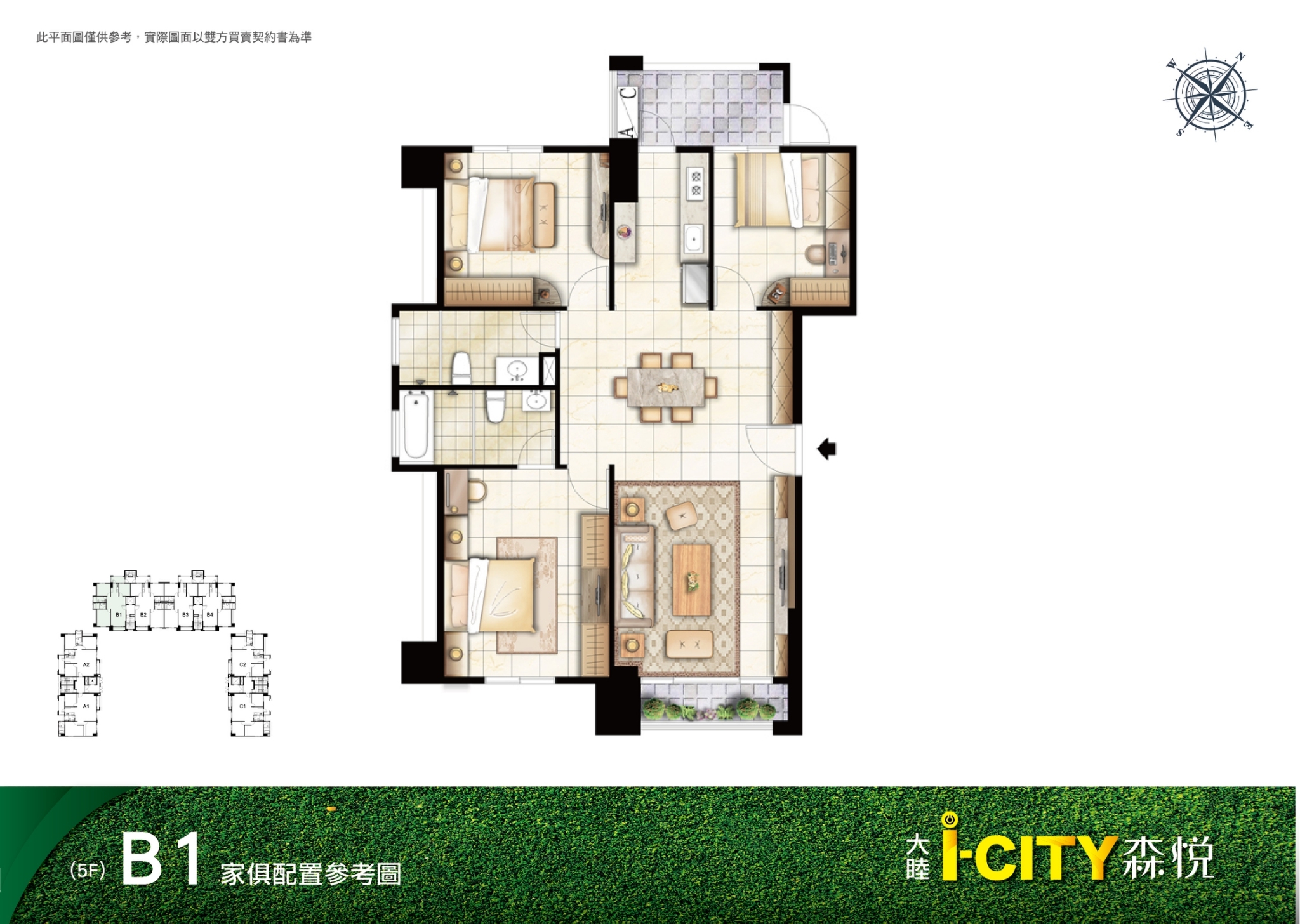 戶戶前陽台,一家一樹植栽、高坪效格局,大器面寬。